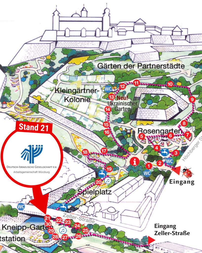 An unserem Stand (Nr. 21) laden wir euch ein, verschiedene Facetten der israelischen Kultur zu entdecken: Freut euch auf israelische Spezialitäten, Spiele und eine offene, herzliche Atmosphäre zum Austausch und Kennenlernen.