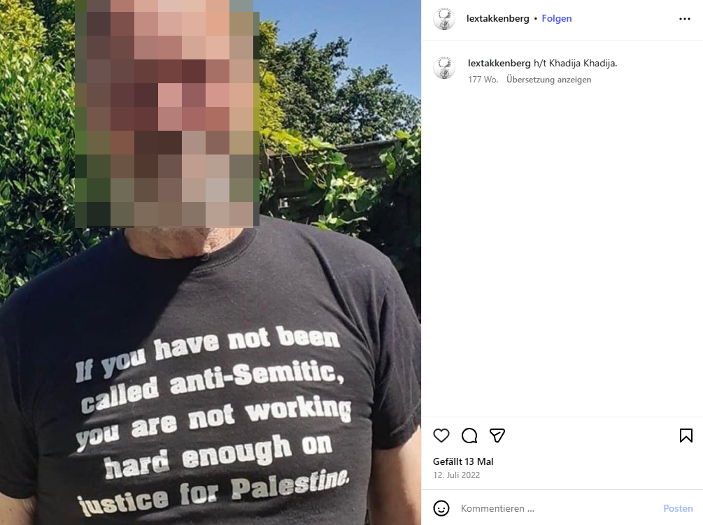 Am 12. Juli 2022 teilt Takkenberg befürwortend eine Darstellung eines Shirts mit der Inschrift »Wenn du noch nicht als Antisemit bezeichnet wurdest, setzt du dich nicht genug für Gerechtigkeit in Palästina ein«
